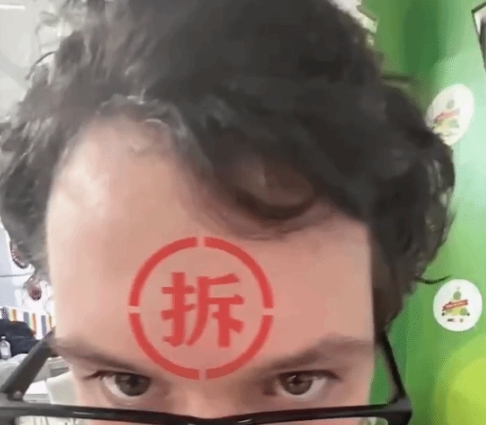 在一個徽標設計活動中,竟有國外網友投稿將logo設計成“拆”。還有不少人將“拆”掛在家中、辦公室,甚至印到頭上。